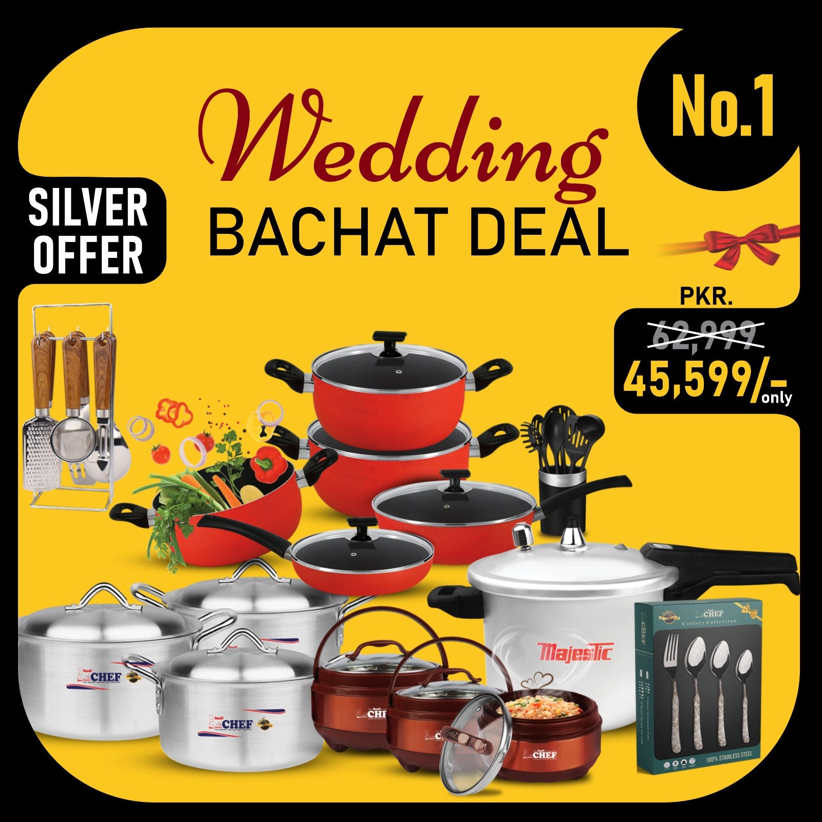 Transform your kitchen and wedding experience with the Chef Best Jahaiz Bachat Deal – Silver Package, a thoughtfully curated complete dowry cookware and kitchen set designed for modern brides and newlyweds. This Silver Wedding Package combines style, durability, and convenience — giving you everything you need to start your new home with elegance and ease.