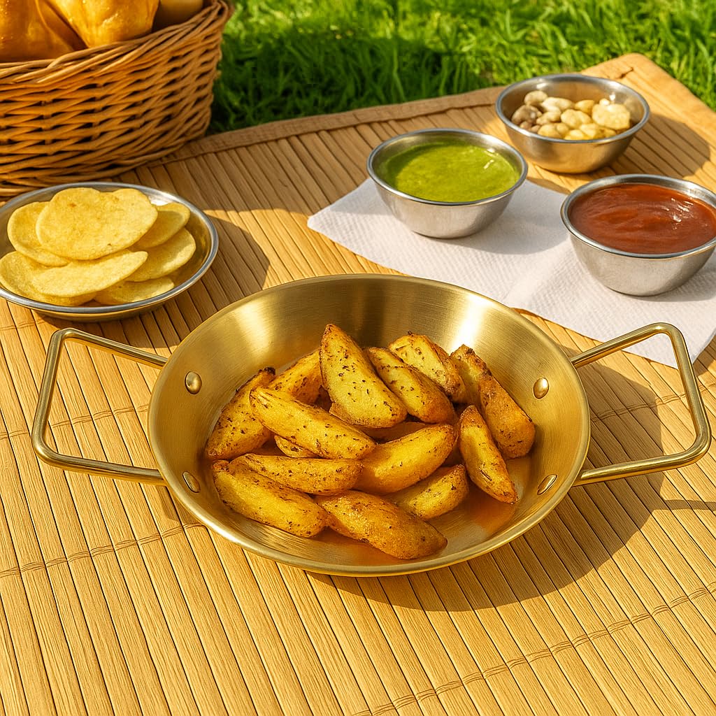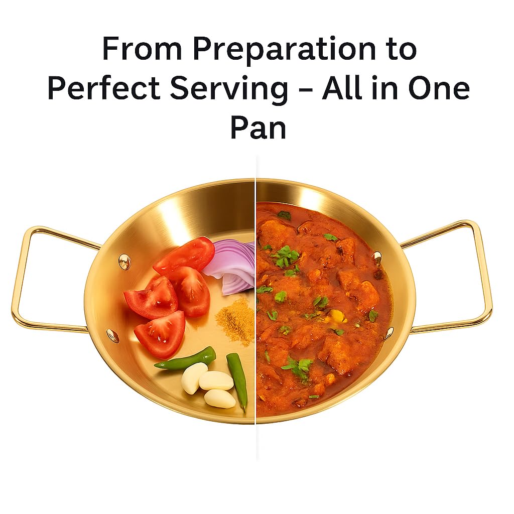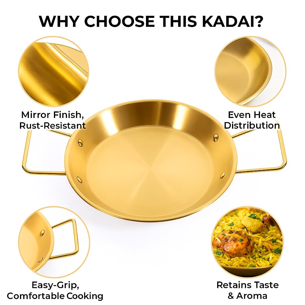 • 24cm & 26 cm Multi Purpose Stainless Steel Gold Frying pan
