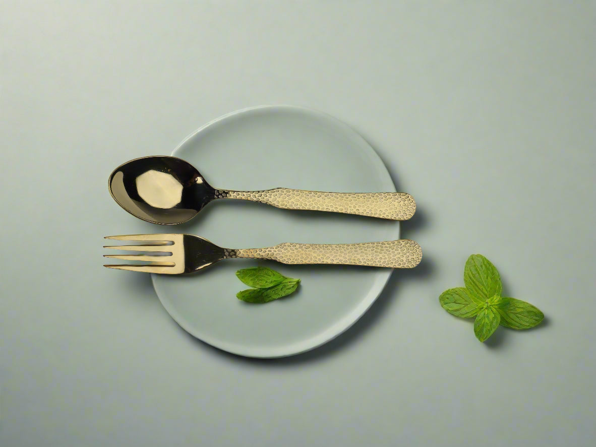 Each piece is crafted from high-quality stainless steel, finished with a durable PVD coating that provides a brilliant shine and exceptional resistance to rust, tarnish, and everyday wear. The distinctive hammer-embossed design adds a touch of sophistication and ensures your dining table always looks refined.